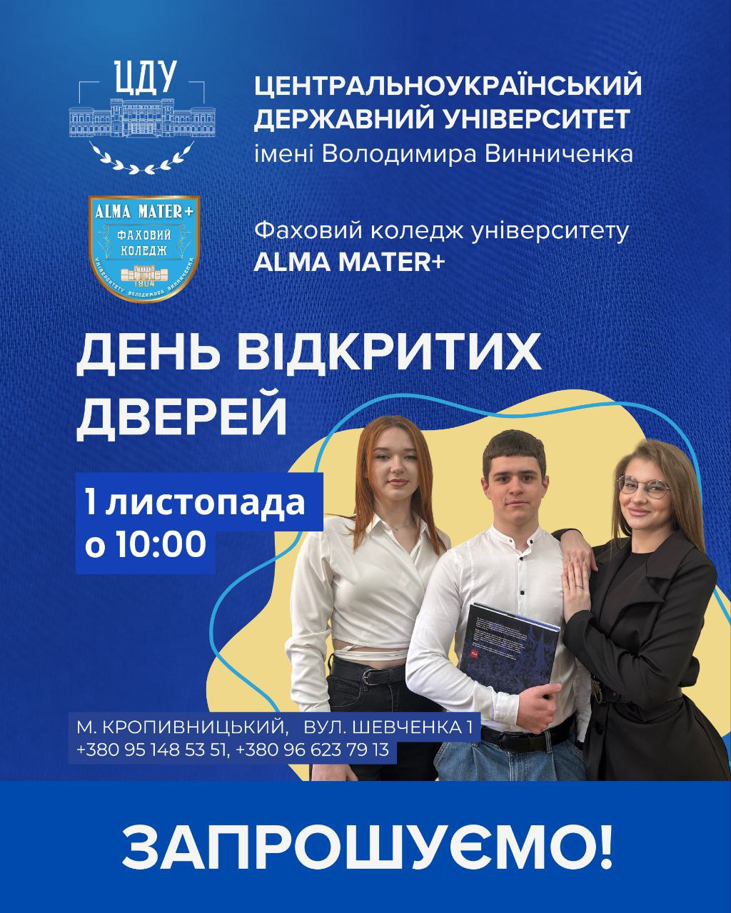 Центральноукраїнський державний університет імені Володимира Винниченка запрошує молодь та дорослих відвідати День відкритих дверей.