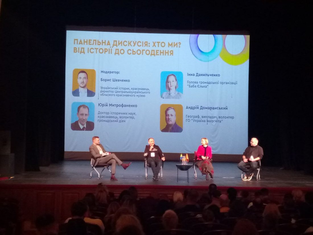 Панель «Хто ми? Від історії до сьогодення» була присвячена питанням української ідентичності, спадщини та ролі бізнесу у розвитку суспільства. Модератором виступив директор Центральноукраїнського обласного краєзнавчого музею Борис Шевченко.