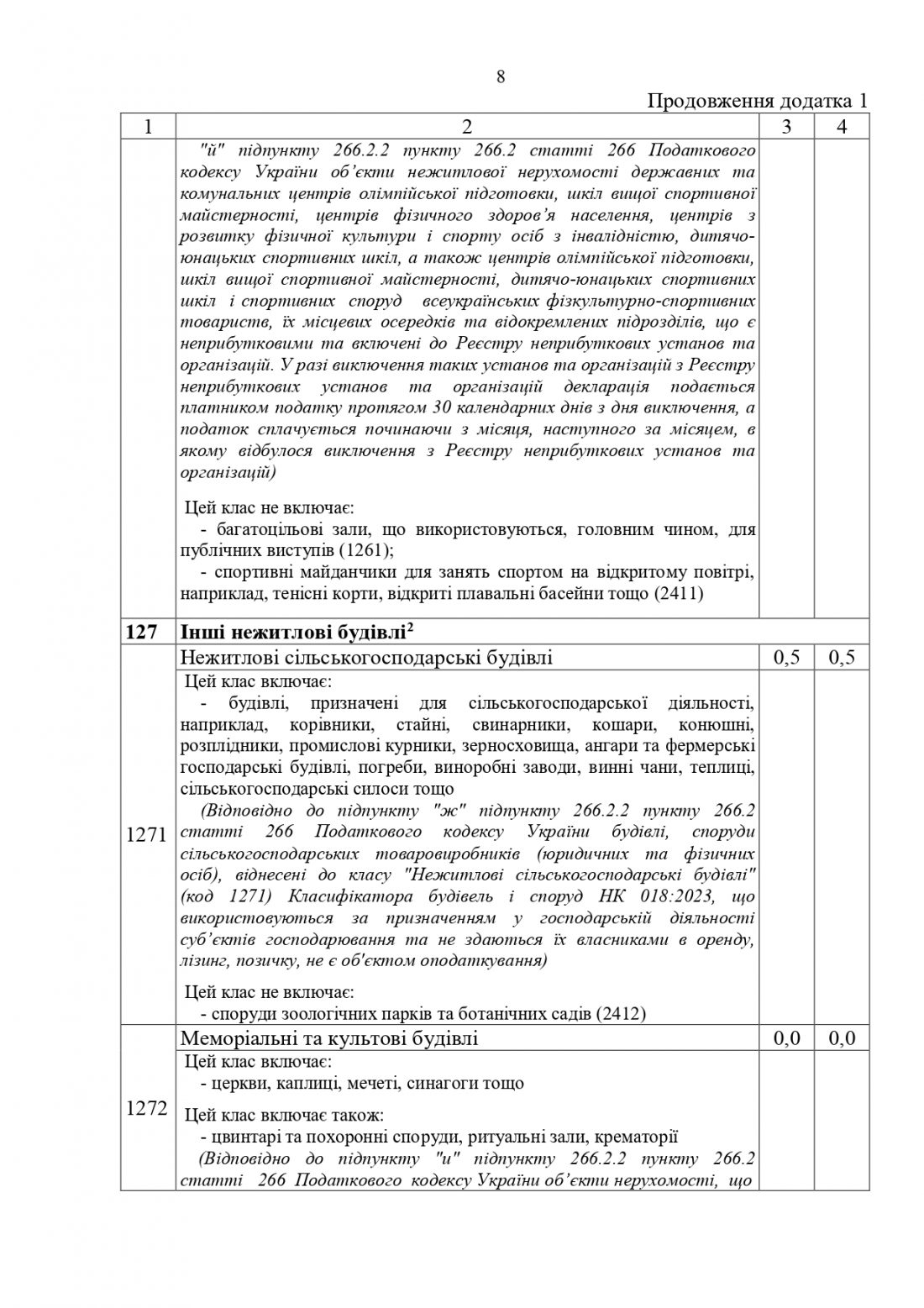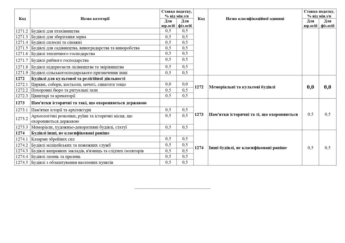 За кодом «Будівлі для культової та релігійної діяльності» по позиціях «Похоронні бюро та ритуальні зали» – ставки для фізичних та