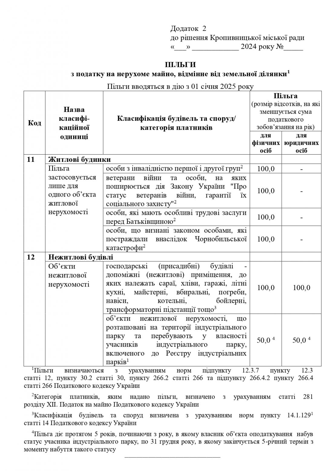Рішення також передбачає пільгу зі сплати податку на нерухоме майно учасникам індустріального парку в розмірі 50% терміном на 5 років починаючи з року, в якому власник об’єкту оподаткування набув статусучасника індустріального парку, по 31 грудня року, в якому закінчується 5-річний термін з моменту набуття такого статусу. Ознайомитися зі ставками та пільгами, а також із порівняльною таблицею можна у фотогалереї.