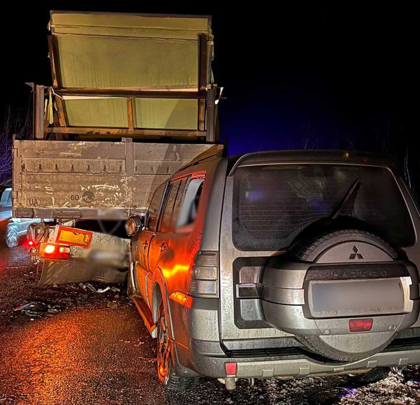 Водій, керуючи автомобілем Mitsubishi Pajero, не був уважний, не стежив за дорожньою обстановкою, не вибрав безпечної швидкості руху, не дотримався безпечної дистанції та здійснив зіткнення з вантажним транспортним засобом DAF XF з напівпричепом, що рухався попереду.