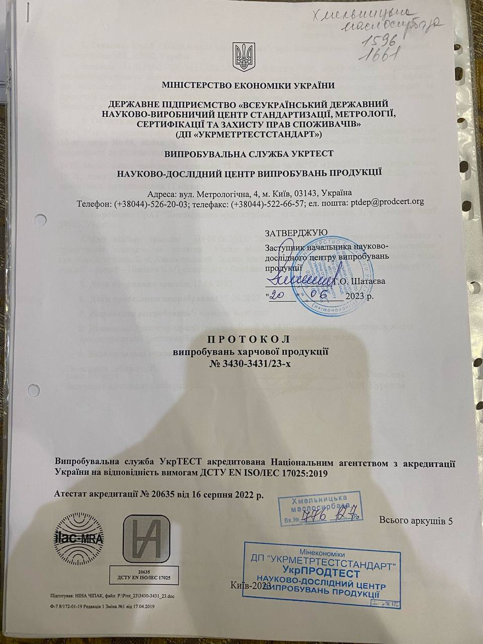 На підтвердження правоти наших слів ми публікуємо результати експертизи партії продукції, яка раніше була відвантажена для постачальника, до якого сьогодні має претензії Національна поліція. Це результати експертизи від державної лабораторії Держпродспоживслужби та ДП «Хмельницькстандартметрологія».