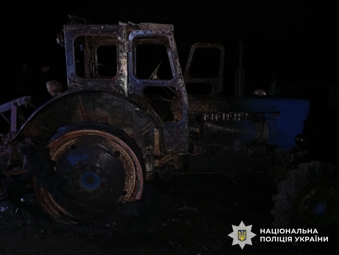 Як повідомляє поліція області, місцевий житель прийшов на територію колишньої тракторної бригади, облив техніку потерпілого легкозаймистою речовиною та підпалив її.