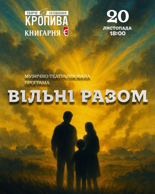20 листопада о 18:00 у Кропивницькому відбудеться показ музично-театралізованого дійства “Вільні разом”. Про це повідомили у творчому об’єднанні “Кропива”.