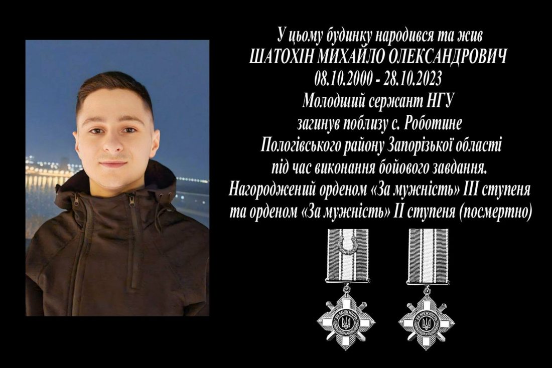 Перша меморіальна дошка буде присвячена загиблому Захиснику України Михайлу Шатохіну. Дозвіл на її встановлення отримала мати воїна. Дошку розмістять на фасаді будинку за адресою: проспект Університетський, 17/2. За її утримання відповідатиме комунальне підприємство «Житлово-експлуатаційна організація №4» Кропивницької міської ради.